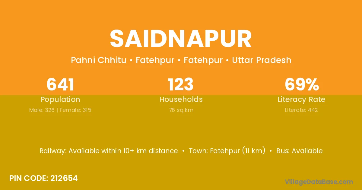 Fatehpur (11 km) is the nearest town to Saidnapur village for major economic activities and is located approximately 11 km away.