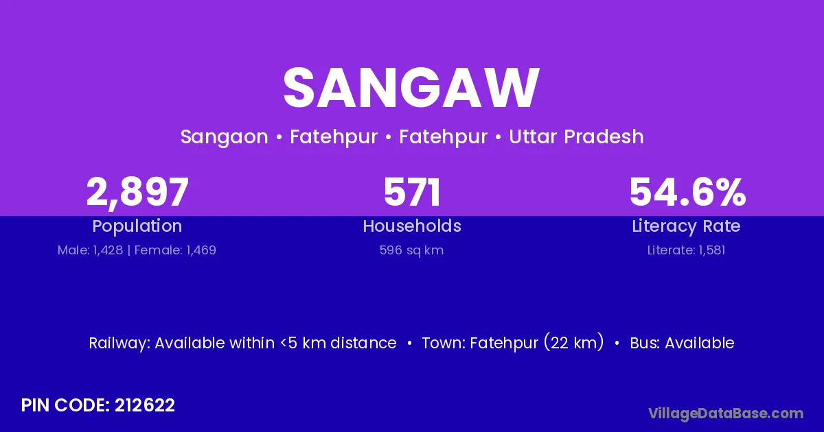 Fatehpur (22 km) is the nearest town to Sangaw village for major economic activities and is located approximately 22 km away.