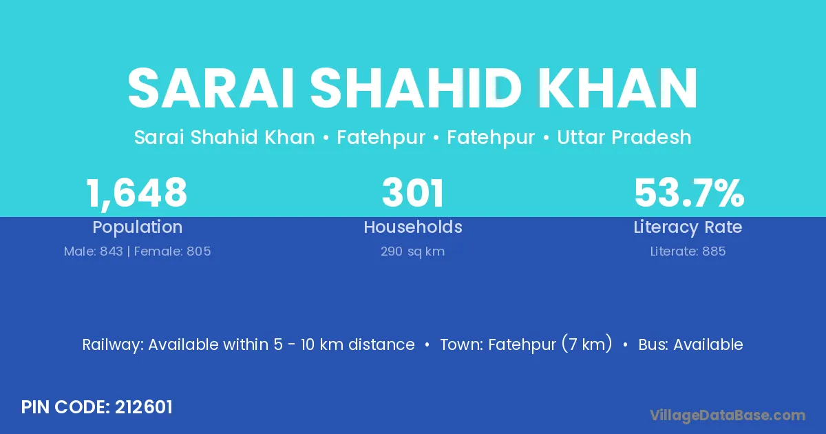 Fatehpur (7 km) is the nearest town to Sarai Shahid Khan village for major economic activities and is located approximately 7 km away.