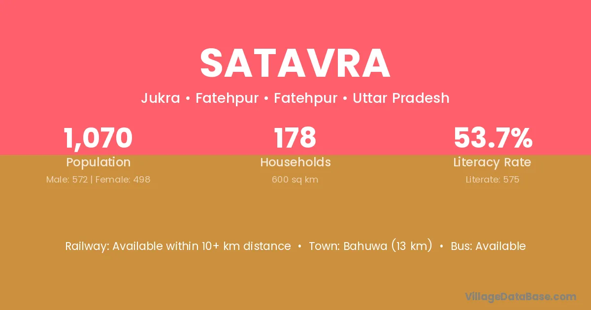 Satavra village has a total population of 1,070 people, of which 572 are males and 498 are females.