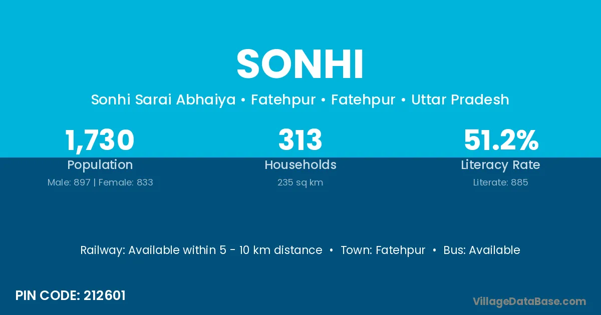 Sonhi village is located in the Fatehpur Tehsil of the Fatehpur district in Uttar Pradesh .