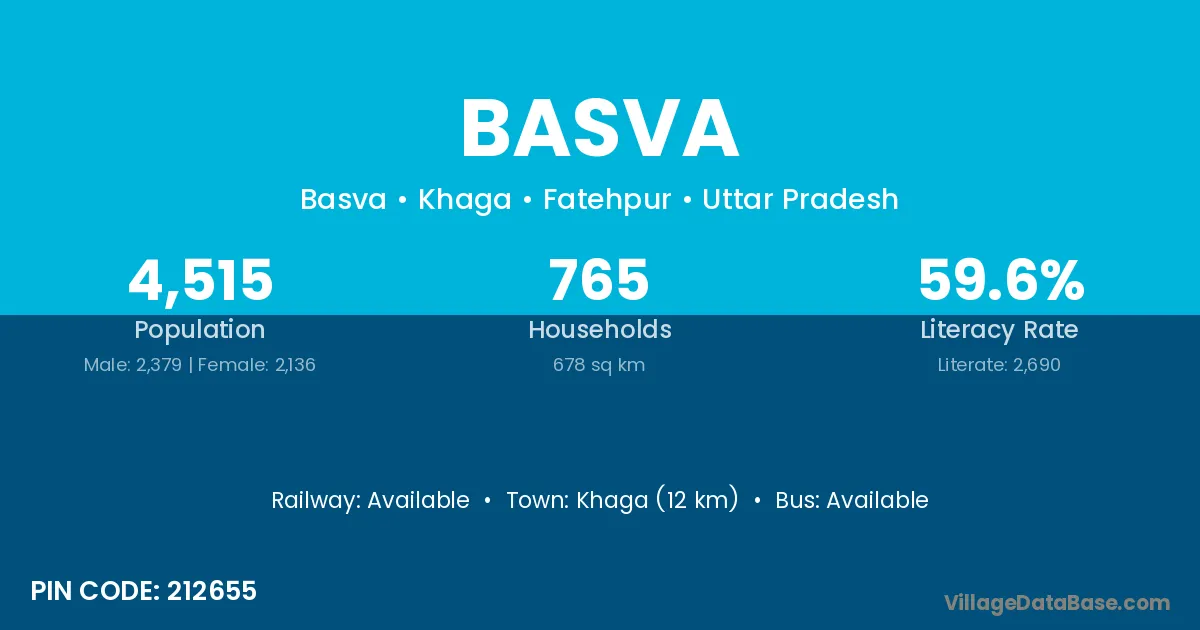 Khaga (12 km) is the nearest town to Basva village for major economic activities and is located approximately 12 km away.