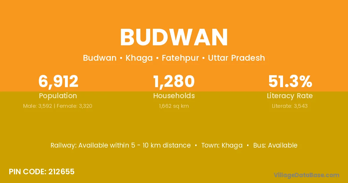 Budwan village has a total population of 6,912 people, of which 3,592 are males and 3,320 are females.