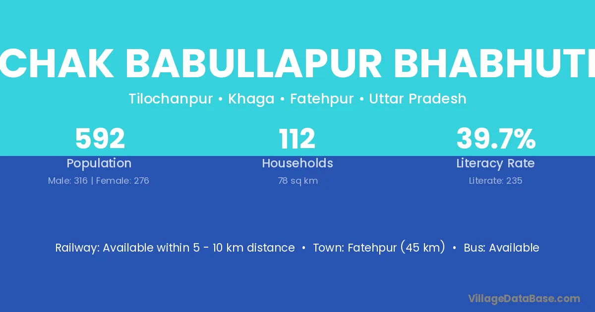 Fatehpur (45 km) is the nearest town to Chak Babullapur Bhabhuti village for major economic activities and is located approximately 45 km away.