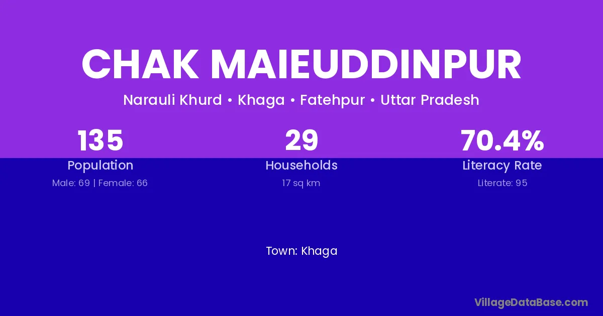 Chak Maieuddinpur village has a total population of 135 people, of which 69 are males and 66 are females.
