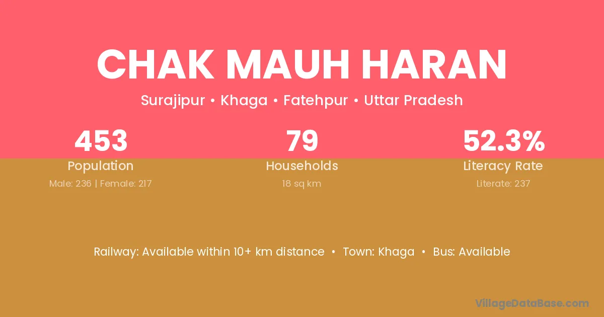 Chak Mauh Haran village has a total population of 453 people, of which 236 are males and 217 are females.