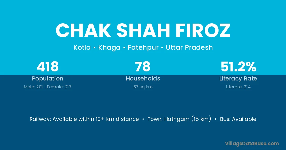 Chak Shah Firoz village has a total population of 418 people, of which 201 are males and 217 are females.