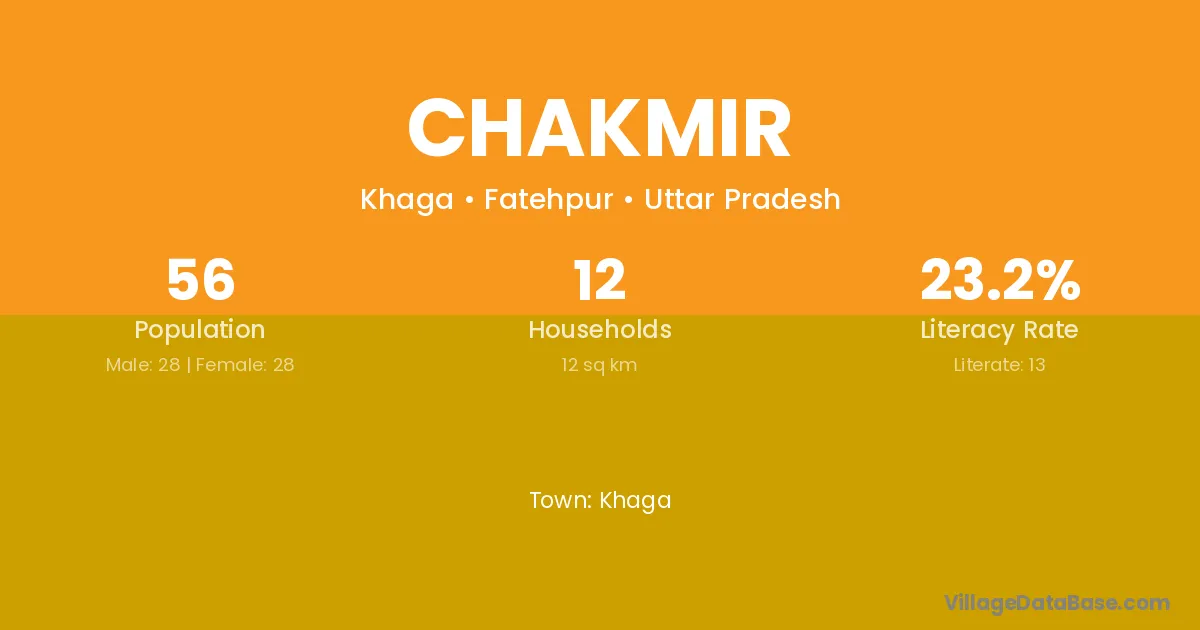 Chakmir village has a total population of 56 people, of which 28 are males and 28 are females.