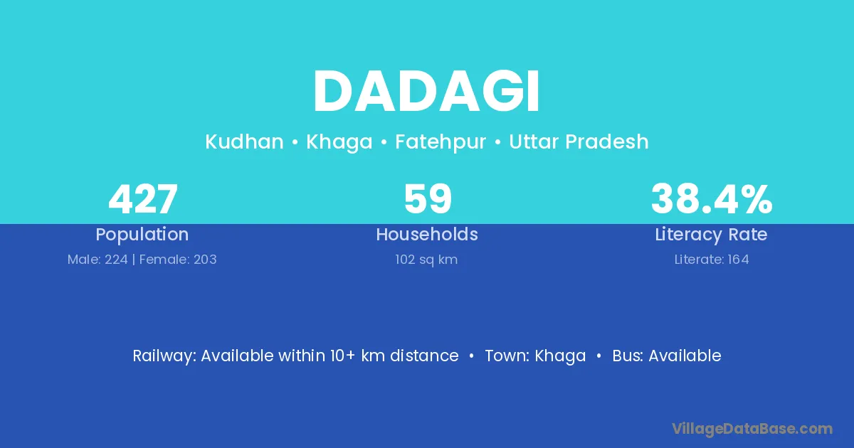 Dadagi village has a total population of 427 people, of which 224 are males and 203 are females.