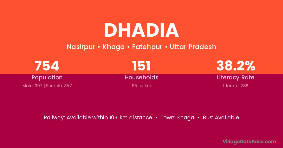 Khaga is the nearest town to Dhadia village for major economic activities