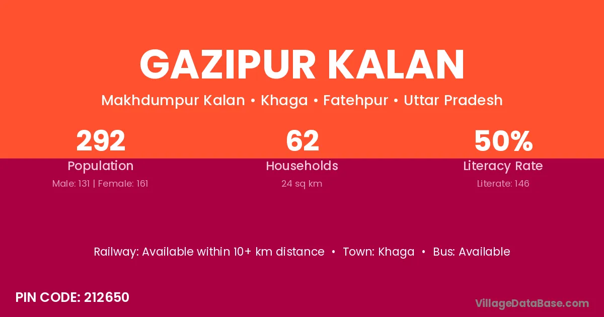 Khaga is the nearest town to Gazipur Kalan village for major economic activities