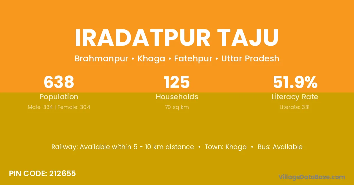 Khaga is the nearest town to Iradatpur Taju village for major economic activities