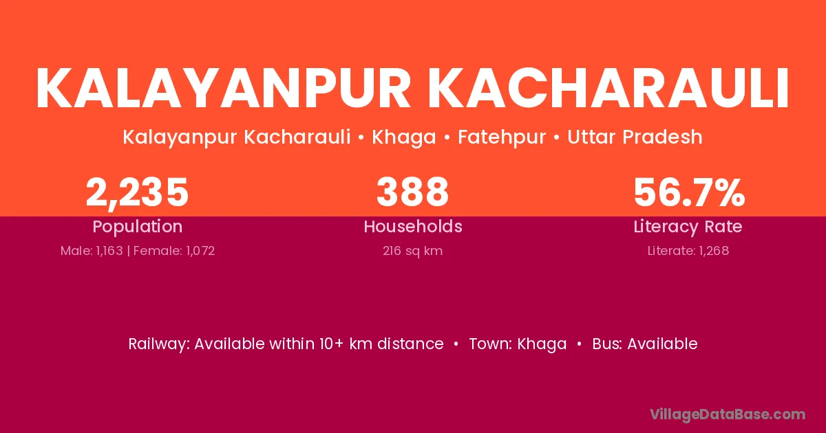 Kalayanpur Kacharauli village has a total population of 2,235 people, of which 1,163 are males and 1,072 are females.