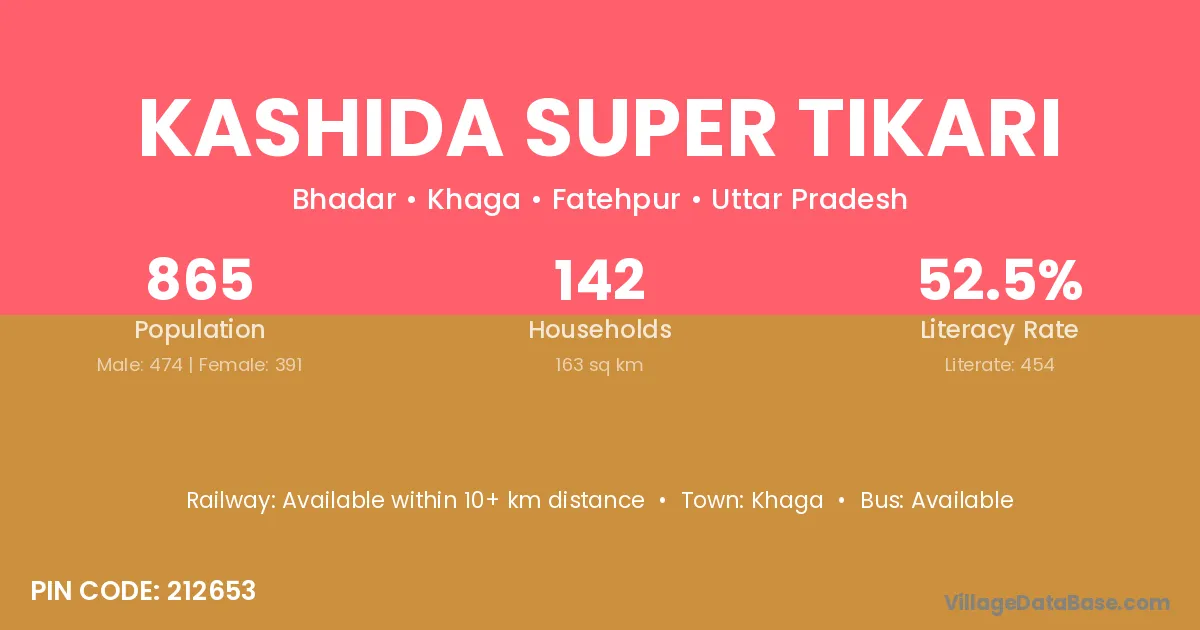 According to Census 2011 information, the village code of Kashida Super Tikari village is 212653.