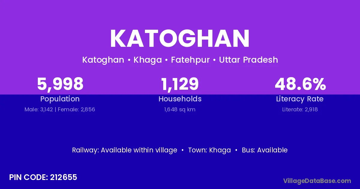 Katoghan village has a total population of 5,998 people, of which 3,142 are males and 2,856 are females.