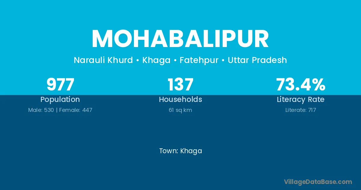 Mohabalipur village has a total population of 977 people, of which 530 are males and 447 are females.