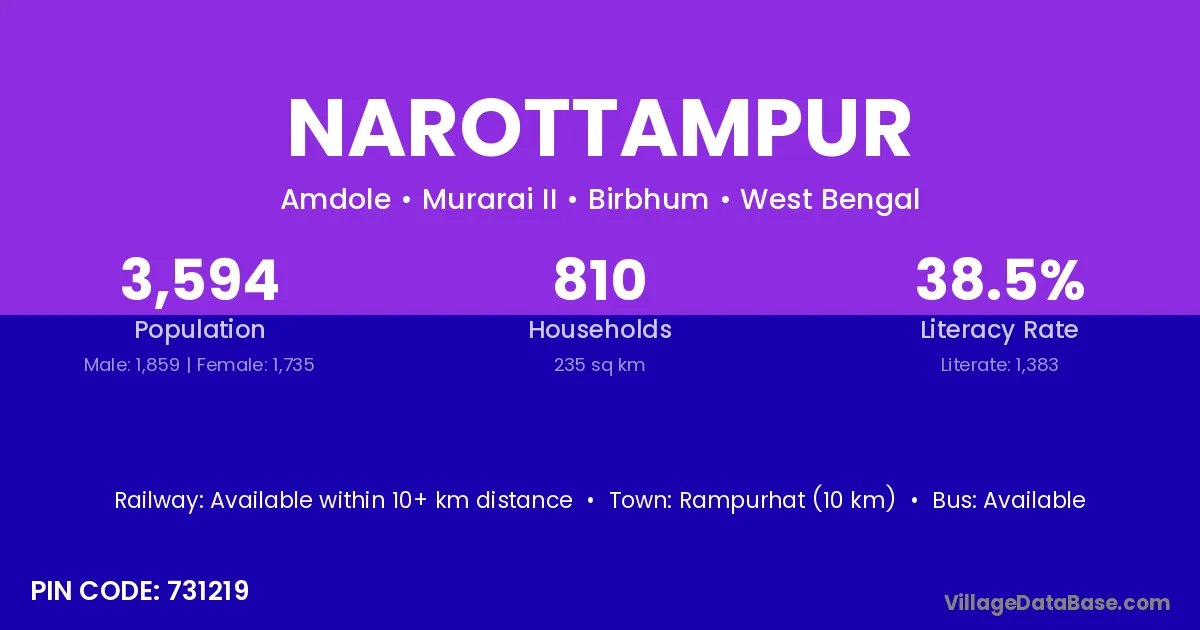 Narottampur village has a total population of 1,004 people, of which 523 are males and 481 are females.