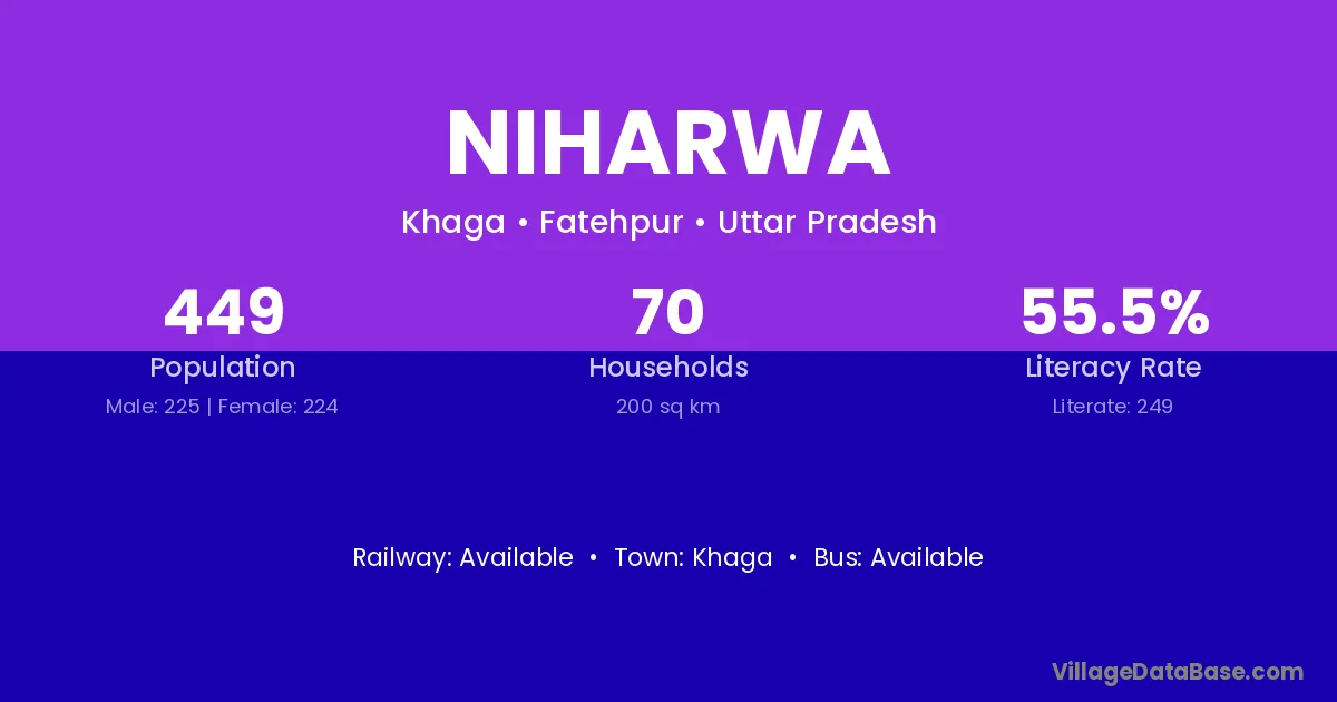Niharwa village has a total population of 449 people, of which 225 are males and 224 are females.