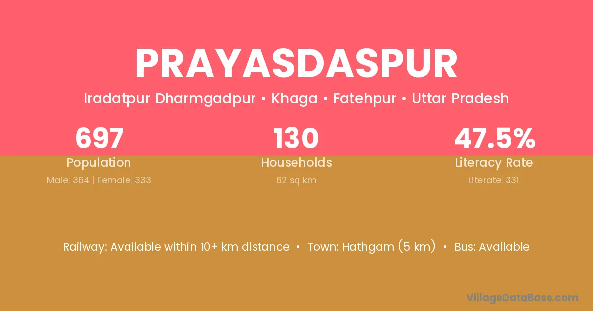 Hathgam (5 km) is the nearest town to Prayasdaspur village for major economic activities and is located approximately 5 km away.