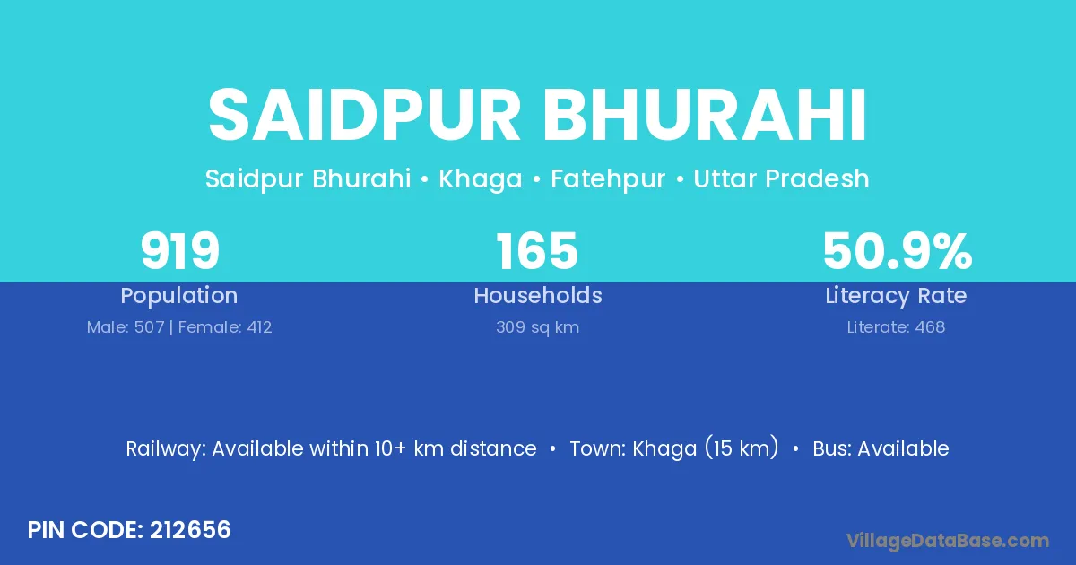 Khaga (15 km) is the nearest town to Saidpur Bhurahi village for major economic activities and is located approximately 15 km away.