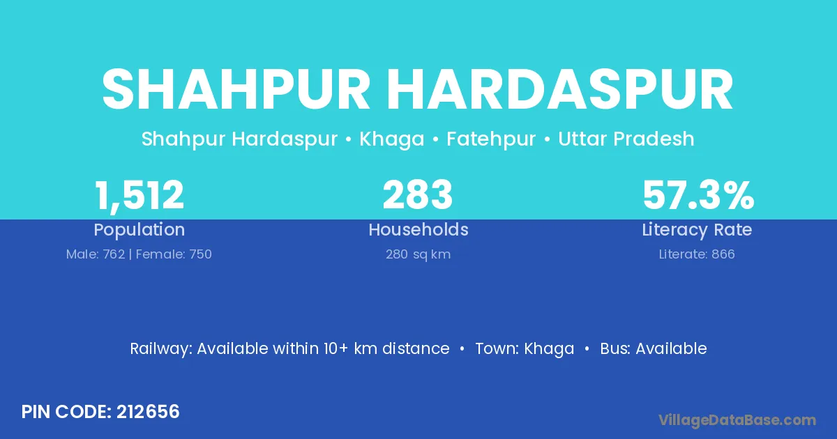 Shahpur Hardaspur village has a total population of 1,512 people, of which 762 are males and 750 are females.
