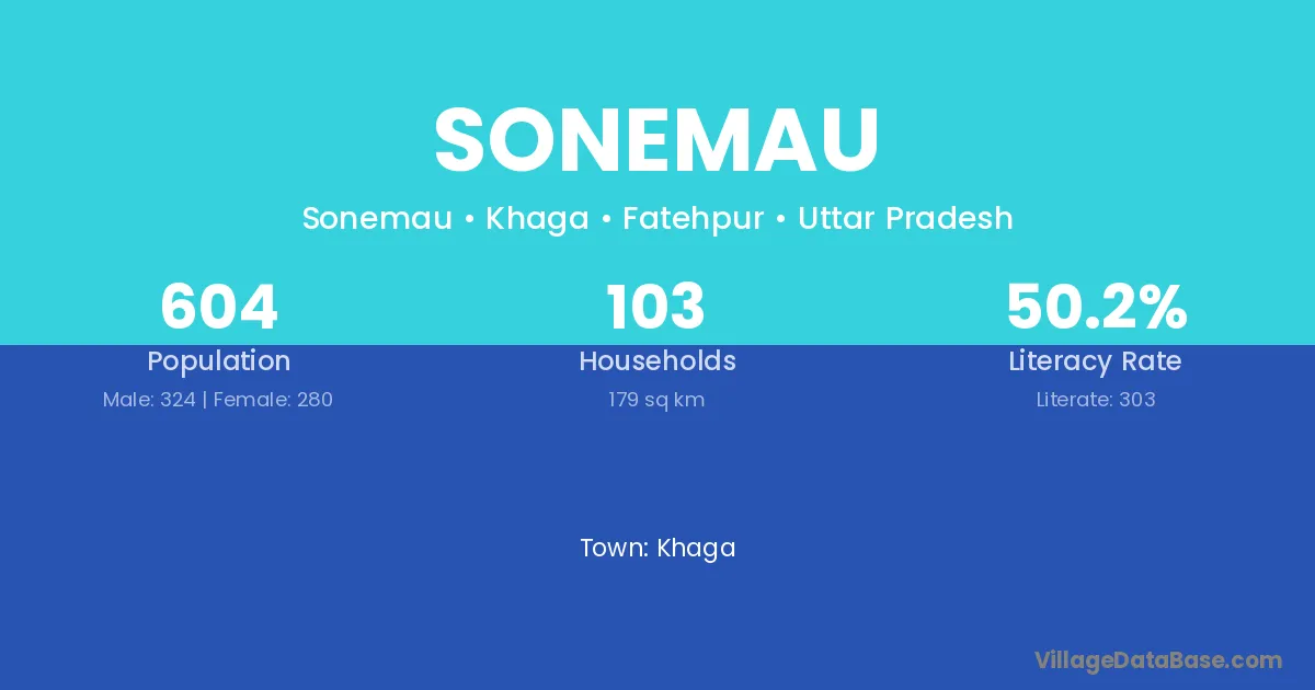 Sonemau village has a total population of 604 people, of which 324 are males and 280 are females.
