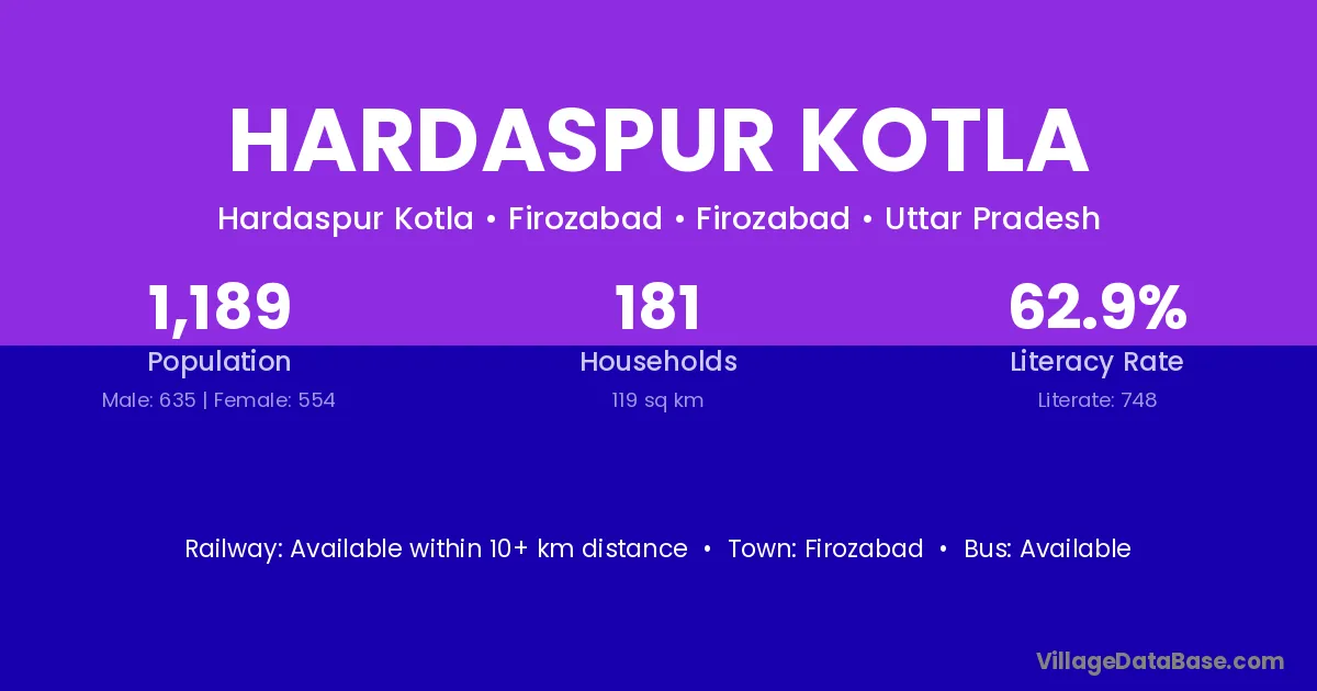 Firozabad is the nearest town to Hardaspur Kotla village for major economic activities