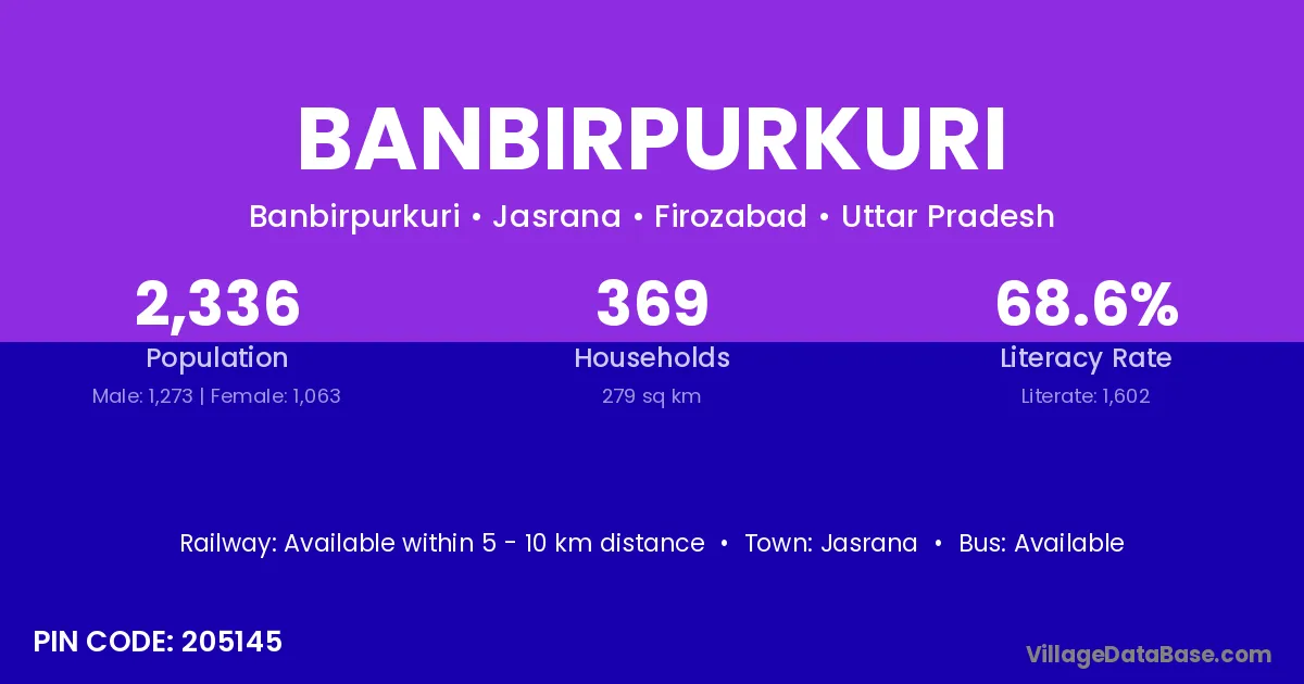 Jasrana is the nearest town to Banbirpurkuri village for major economic activities