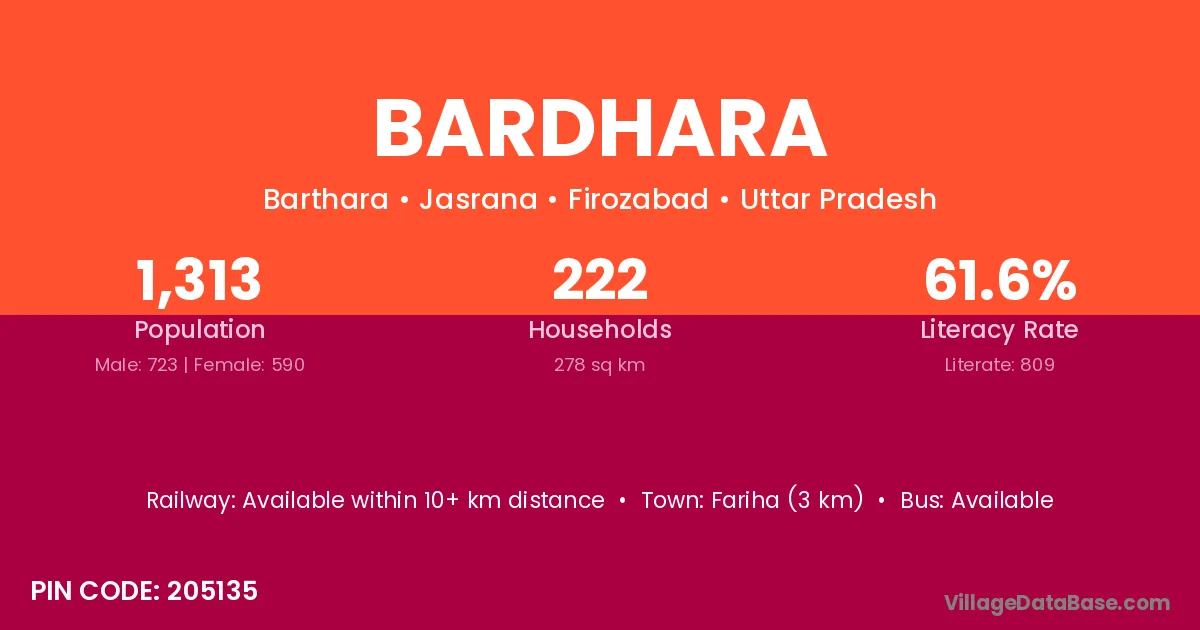 Fariha (3 km) is the nearest town to Bardhara village for major economic activities and is located approximately 3 km away.