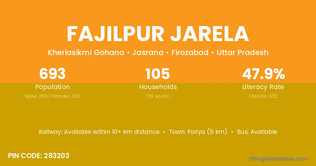 Fariya (5 km) is the nearest town to Fajilpur Jarela village for major economic activities and is located approximately 5 km away.