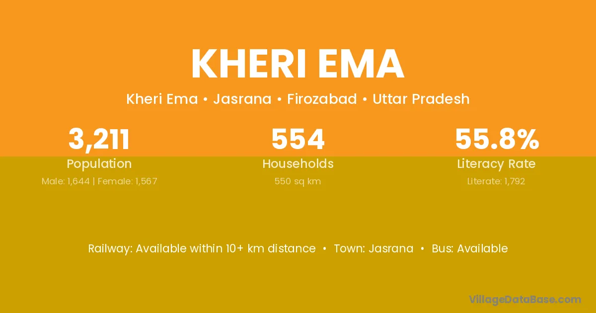 Jasrana is the nearest town to Kheri Ema village for major economic activities
