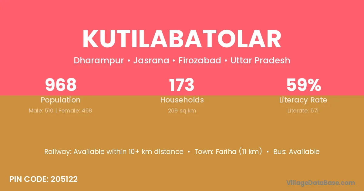 Kutilabatolar village has a total population of 968 people, of which 510 are males and 458 are females.