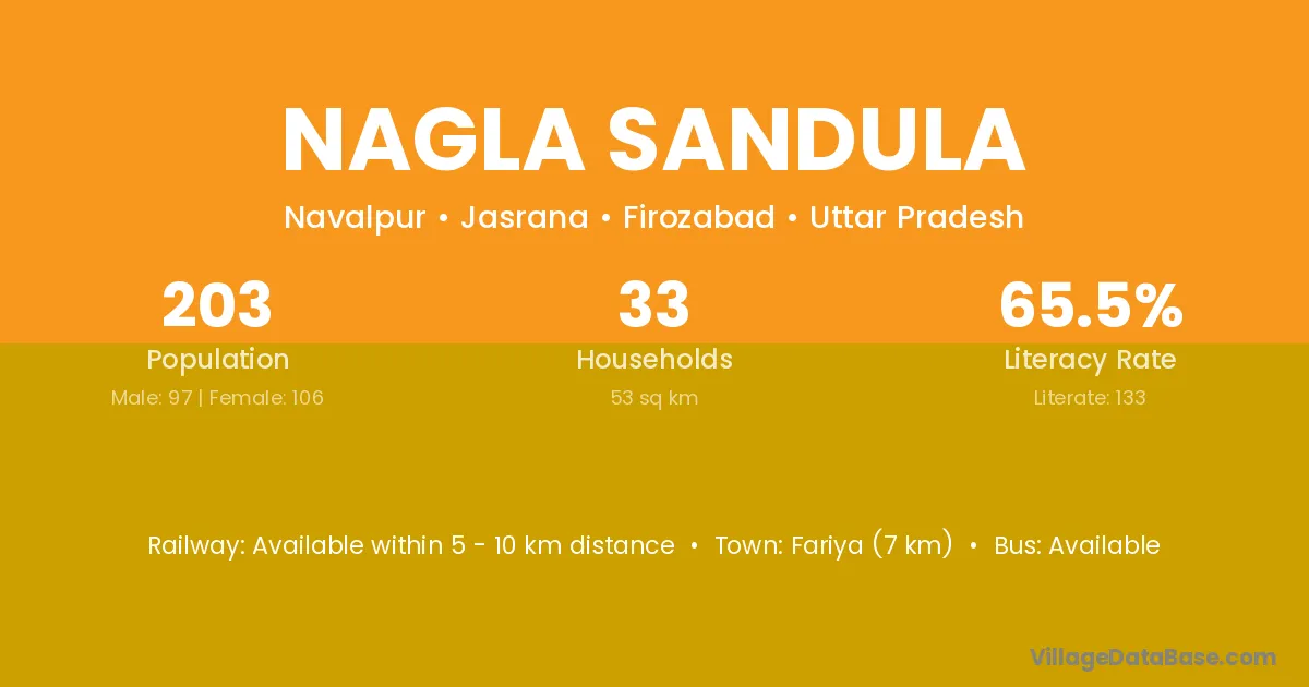 Nagla Sandula village has a total population of 203 people, of which 97 are males and 106 are females.