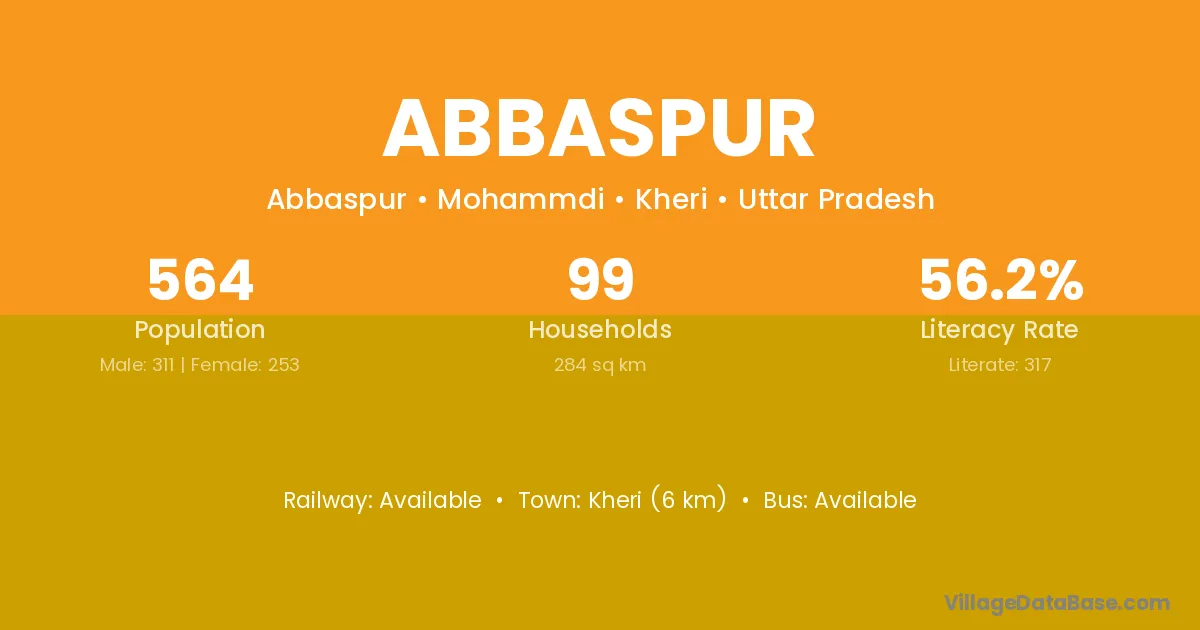 The literacy rate of Abbaspur village is 56.13%. Male literacy stands at 64.77% and female literacy at 45.45%.