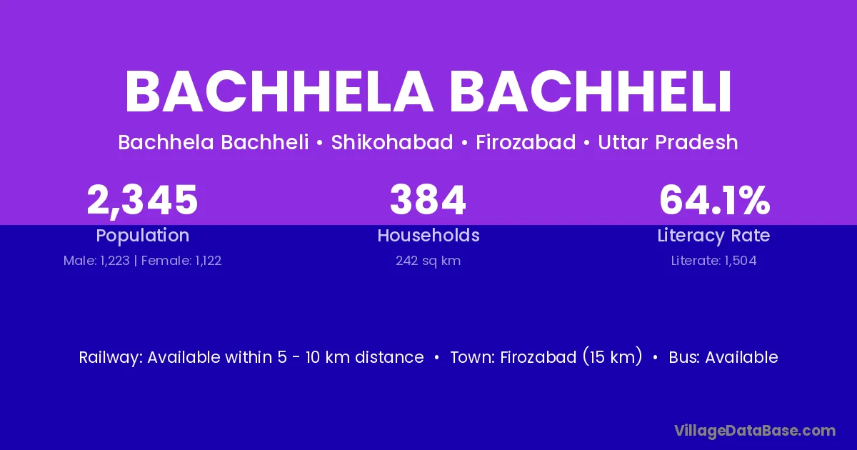 Firozabad (15 km) is the nearest town to Bachhela Bachheli village for major economic activities and is located approximately 15 km away.