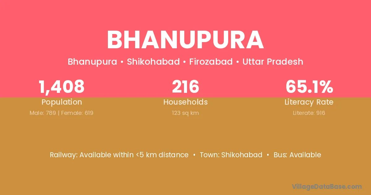 Shikohabad is the nearest town to Bhanupura village for major economic activities