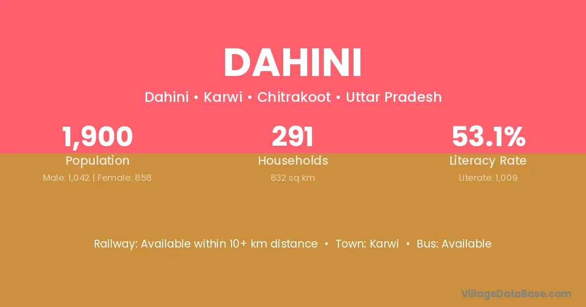 Dahini village has a total population of 1,582 people, of which 843 are males and 739 are females.