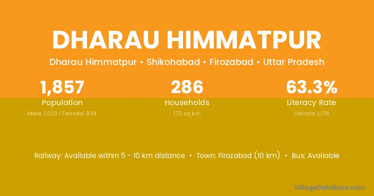 Firozabad (10 km) is the nearest town to Dharau Himmatpur village for major economic activities and is located approximately 10 km away.