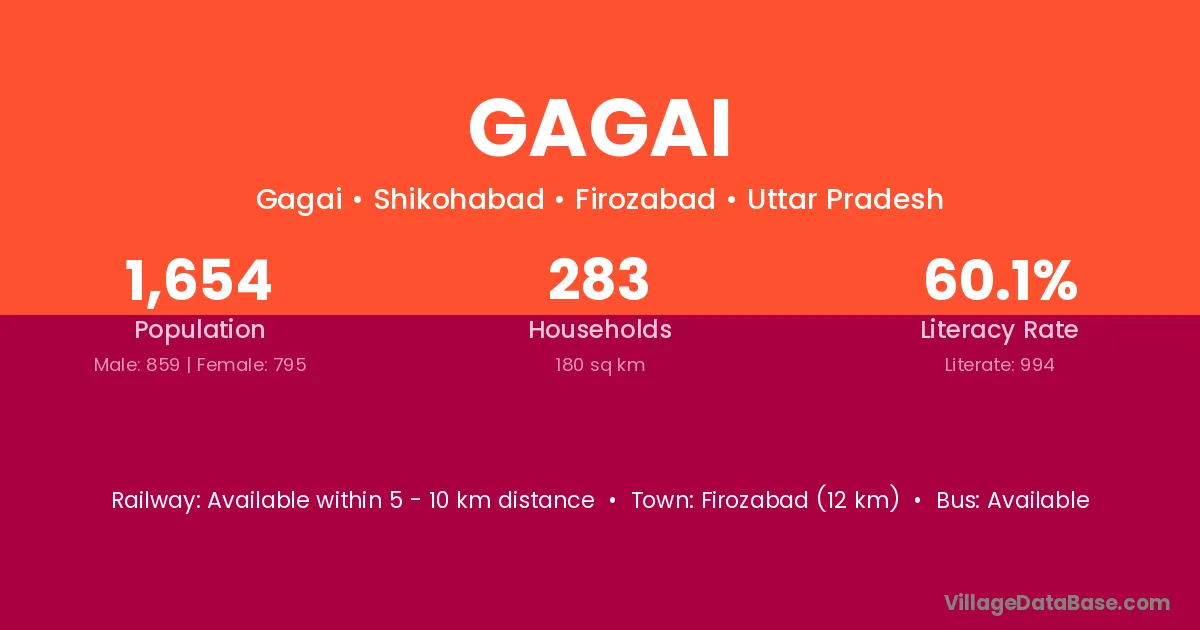 Firozabad (12 km) is the nearest town to Gagai village for major economic activities and is located approximately 12 km away.
