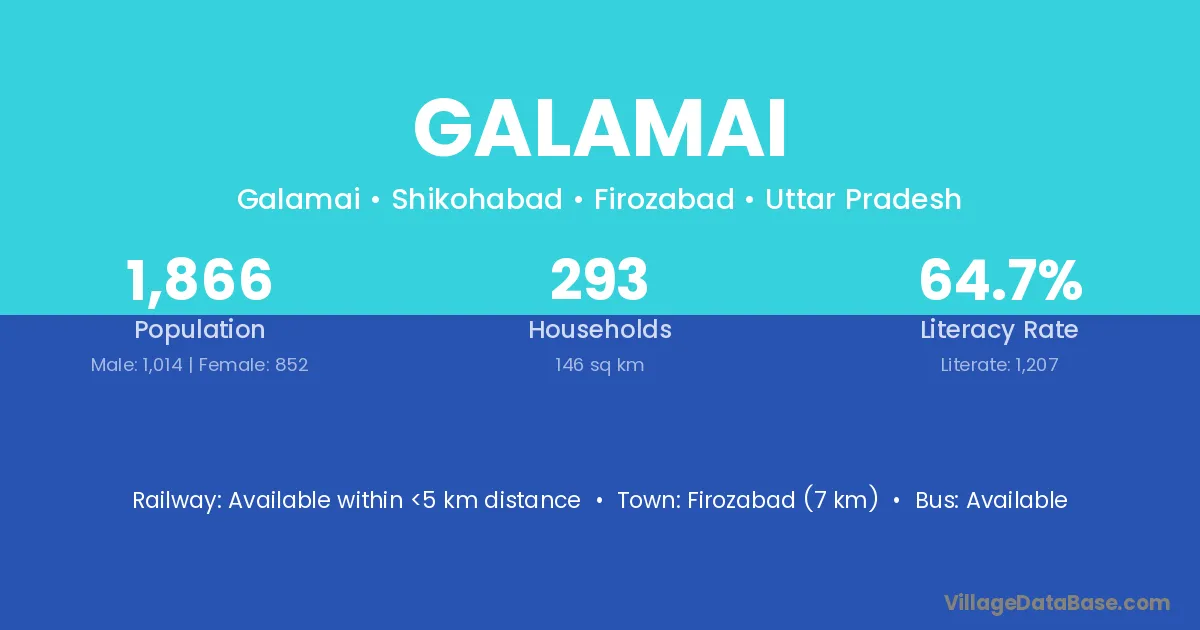 Firozabad (7 km) is the nearest town to Galamai village for major economic activities and is located approximately 7 km away.