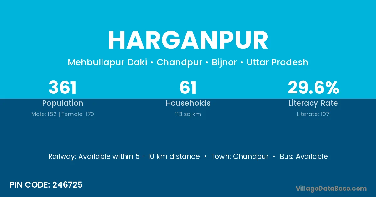 Firozabad (30 km) is the nearest town to Harganpur village for major economic activities and is located approximately 30 km away.