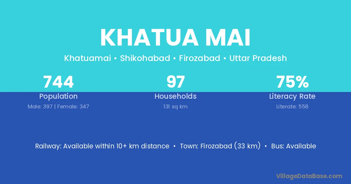 Firozabad (33 km) is the nearest town to Khatua Mai village for major economic activities and is located approximately 33 km away.