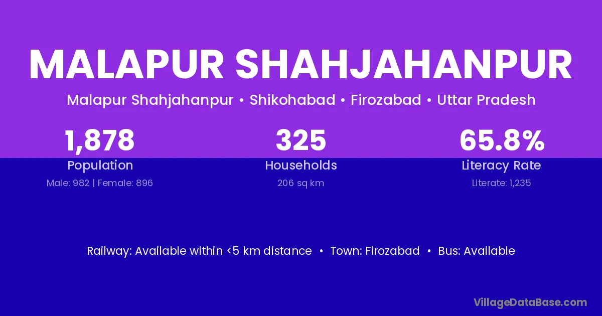 Firozabad is the nearest town to Malapur Shahjahanpur village for major economic activities