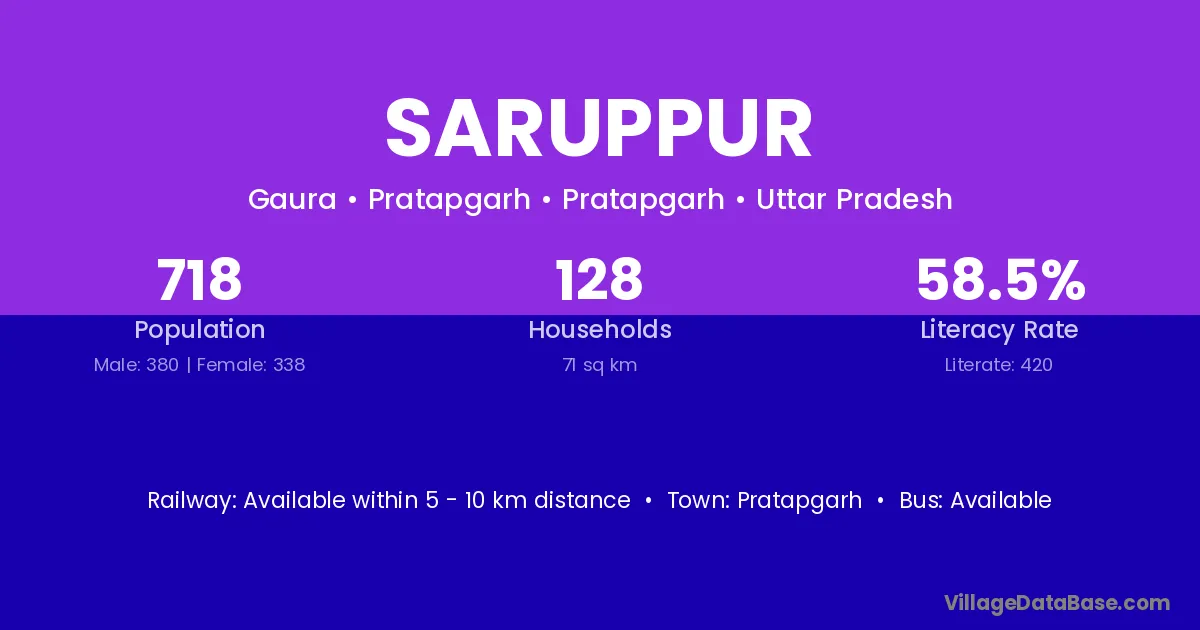 Firozabad (24 km) is the nearest town to Saruppur village for major economic activities and is located approximately 24 km away.