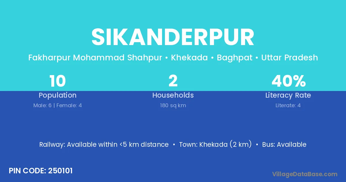 Firozabad (9 km) is the nearest town to Sikanderpur village for major economic activities and is located approximately 9 km away.