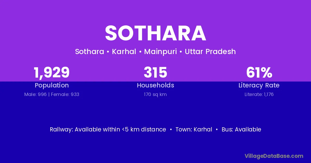 Firozabad (8 km) is the nearest town to Sothara village for major economic activities and is located approximately 8 km away.
