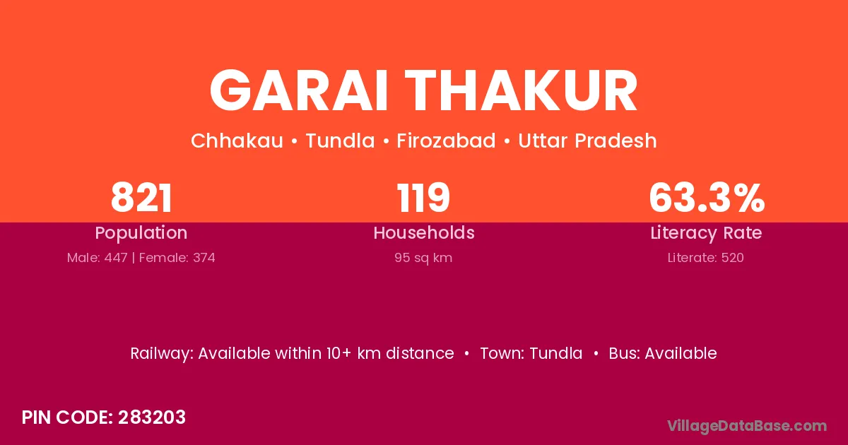 According to Census 2011 information, the village code of Garai Thakur village is 283203.