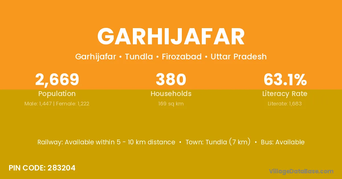 Tundla (7 km) is the nearest town to Garhijafar village for major economic activities and is located approximately 7 km away.