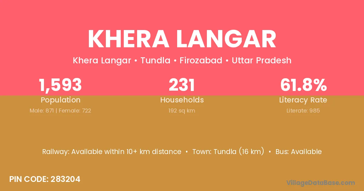 Tundla (16 km) is the nearest town to Khera Langar village for major economic activities and is located approximately 16 km away.