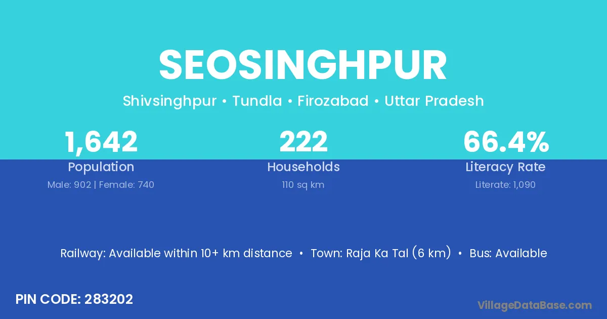 Raja Ka Tal (6 km) is the nearest town to Seosinghpur village for major economic activities and is located approximately 6 km away.